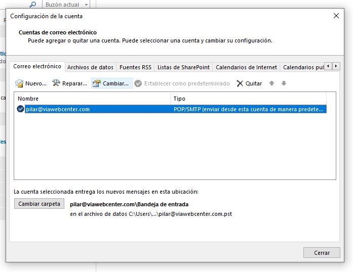 Cuando ingrese al Outlook, debe darle clic derecho a la cuenta de correo.